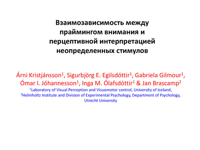 Кристьянссон А. Взаимозависимость между праймингом внимания и перцептивной интерпретацией неопределенных стимуло