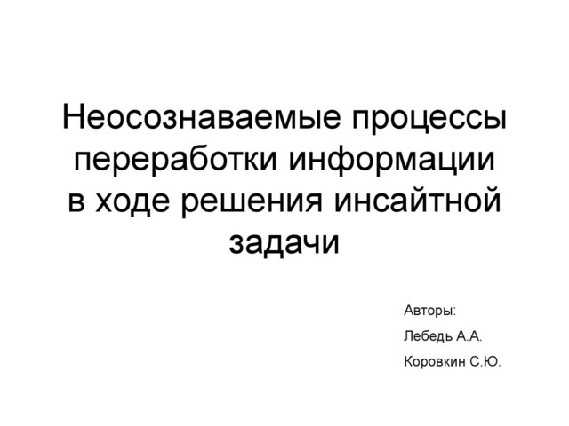 Лебедь А.А., Коровкин С.Ю. Неосознаваемые процессы переработки информации в ходе решения инсайтной задачи
