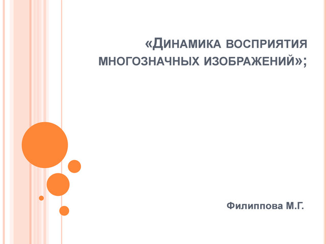 Презентация доклада М.Г. Филипповой "Динамика восприятия многозначных изображений" на семинаре "От вазы к лицам". Другие материалы семинара опубликованы на сайте Cogito ergo ... : http://cogitoergo.ru/