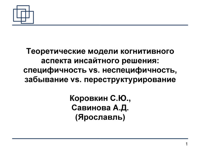 Выступление С. Ю. Коровкина с докладом "Теоретические модели когнитивного аспекта инсайтного решения" на семинаре "Автоматизм инсайта, или Почему удивляются роботы". Тезисы доклада и видеозапись выступления опубликованы на сайте Cogito ergo ... : http://cogitoergo.ru/2012/11/teoreticheskie-modeli-kognitivnogo-aspekta-insajtnogo-resheniya/