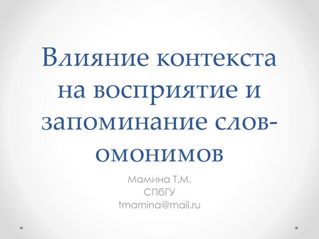 Т.М. Мамина. Влияние контекста на восприятие и запоминание слов-омонимов