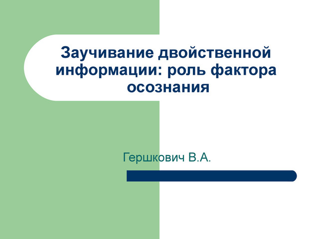 Презентация доклада В.А. Гершкович "Заучивание двойственной информации: роль фактора осознания" на семинаре "Автоматизм инсайта, или Почему удивляются роботы". Тезисы доклада и видео выступления опубликованы на сайте Cogito ergo ... : http://cogitoergo.ru/2012/12/the-learning-of-the-dual-of-information-the-role-of-the-factor-of-awareness/