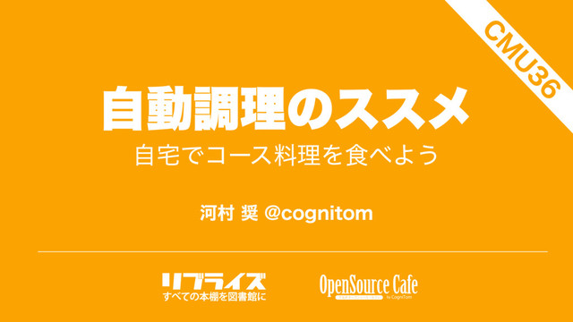 Տଜ!DPHOJUPN ࣗಈௐཧͷεεϝ ࣗͰίʔεྉཧΛ৯Α͏ $ . 6