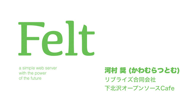 CMU#43 「ES6時代のためのWebサーバ『Felt』」by 河村 奨 http://cmu.connpass.com/event/36722/