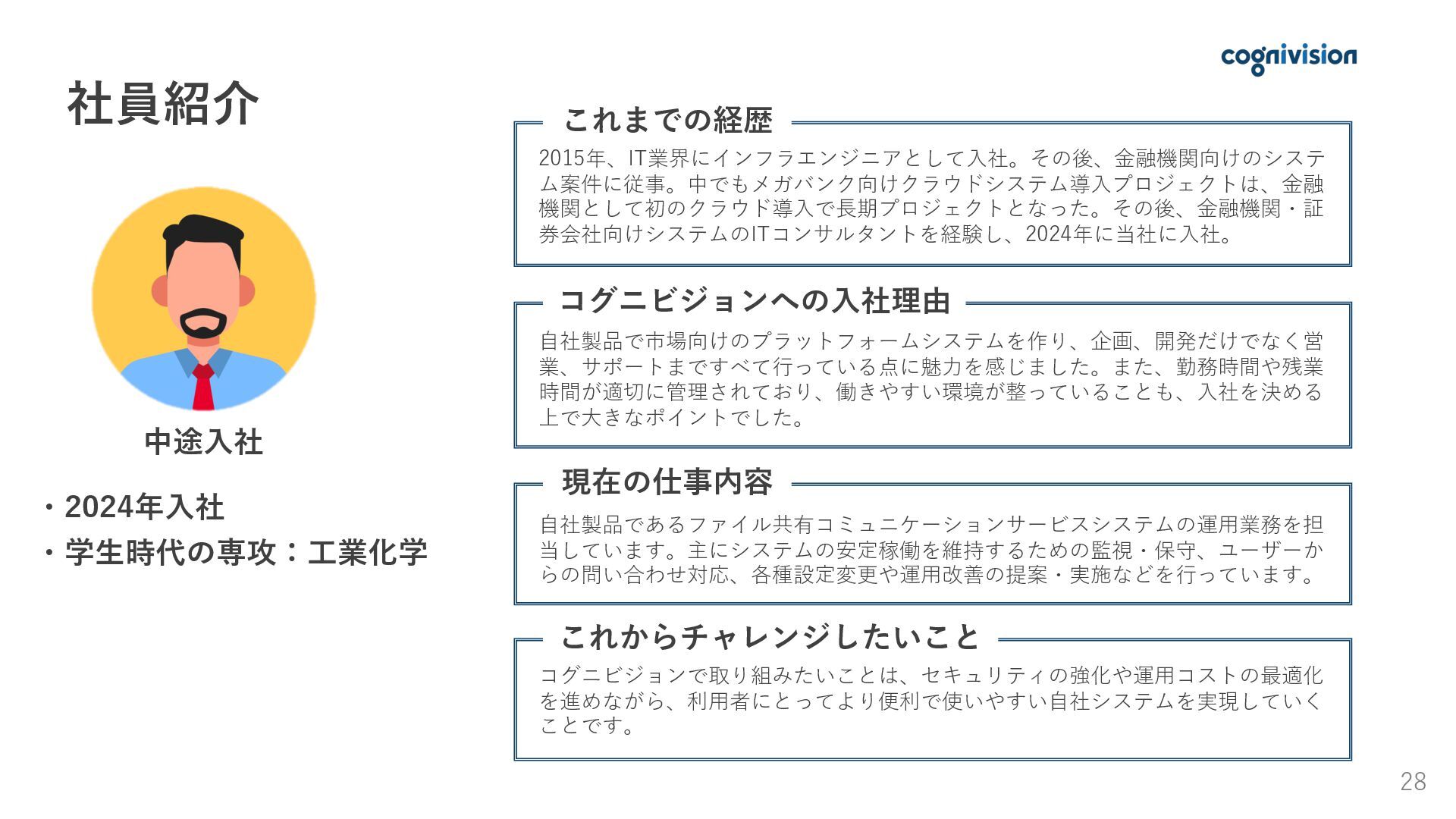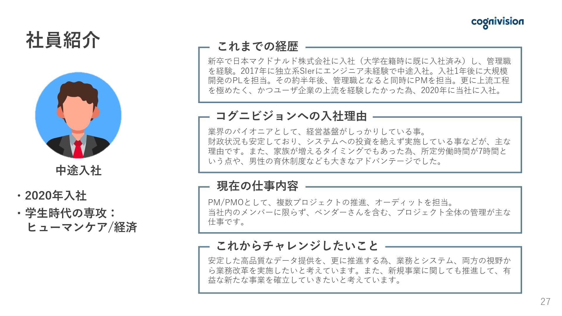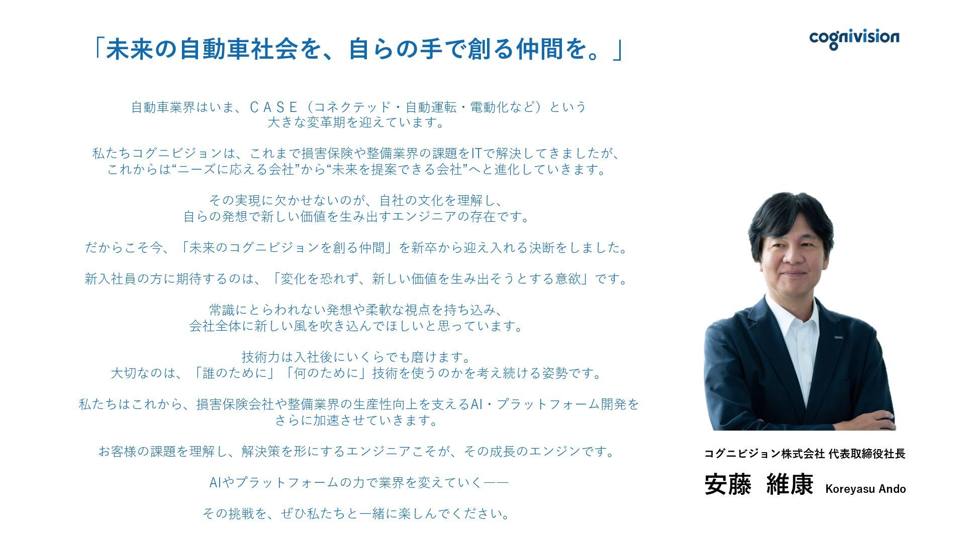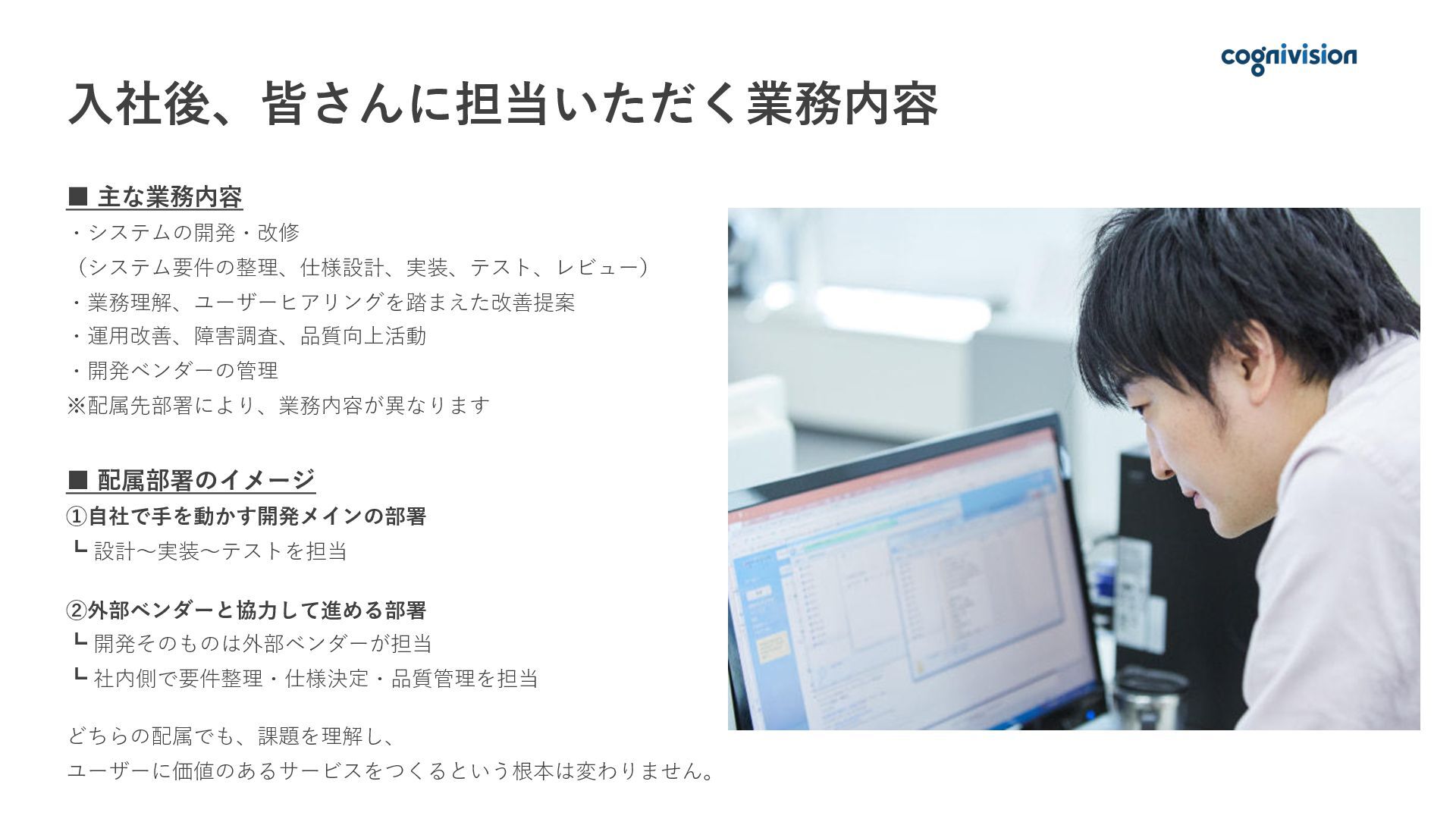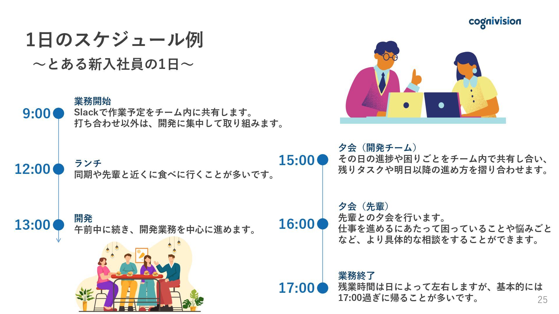 01. 採用メッセージ 02. 会社概要 03. 事業紹介と強み 04. 仕事内容 05. 1日のスケジュール・社員紹介 06. 働く環境 07. 育成・キャリア支援 08. 求める人物像 09. 募集要項・選考