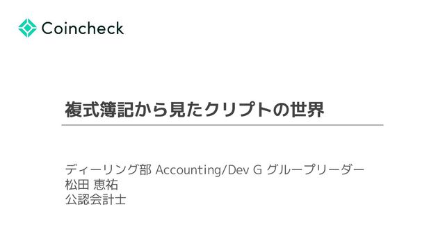 複式簿記から見たクリプトの世界 ディーリング部 Accounting/Dev G グループリーダー 松田 恵祐 公認会計士