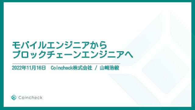 こんにちは、ウォレット開発運用部アプリケーション開発グループの山崎です。2022年11月16日に行われた株式会社Ginco主催『ブロックチェーン領域に異業種転職したエンジニアたちの近況報告会』に登壇させていただいた時の資料になります。