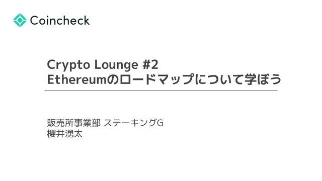 Crypto Lounge #2 Ethereumのロードマップについて学ぼう 販売所事業部 ステーキングG 櫻井湧太