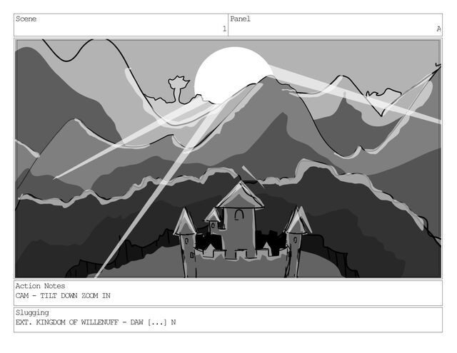 Scene 1 Panel A Action Notes CAM - TILT DOWN