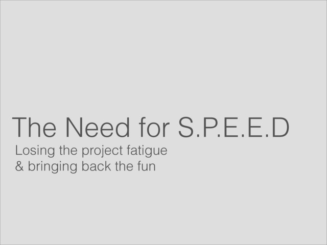 The Need for S.P.E.E.D Losing the project fatigue & bringing
