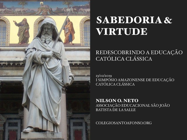 Apresentação dada no I Simpósio Amazonense de Educação Clássica, realizado pela Associação Cultural e Educacional São João Batista de La Salle, associação mantenedora do Colégio Santo Afonso, Manaus/AM, como introdução à Educação Clássica Católica