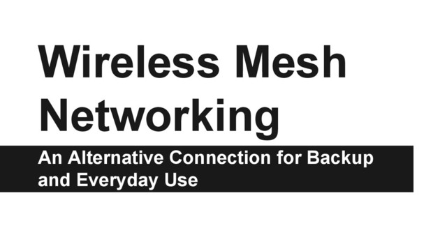 Police by Alberto Guerra Quintanilla Lightning by Adam Whitcroft Decrease by Rediffusion Roof by Paulo Sá Ferreira Backpack by Salvador Rivera Radio Tower by Tyler Payne Battery by Edward Boatman Satellite by Benni Renewable Energy by Krisada Quadcopter by Nithin Davis Nanthikkara Bus and Car are public domain. Others PittMesh trihexagon logo and Meta Mesh logo are property of Meta Mesh, LLC. Map is by Stamen Design. Wireless access point picture by Josh Lucas of The Hardware Store.