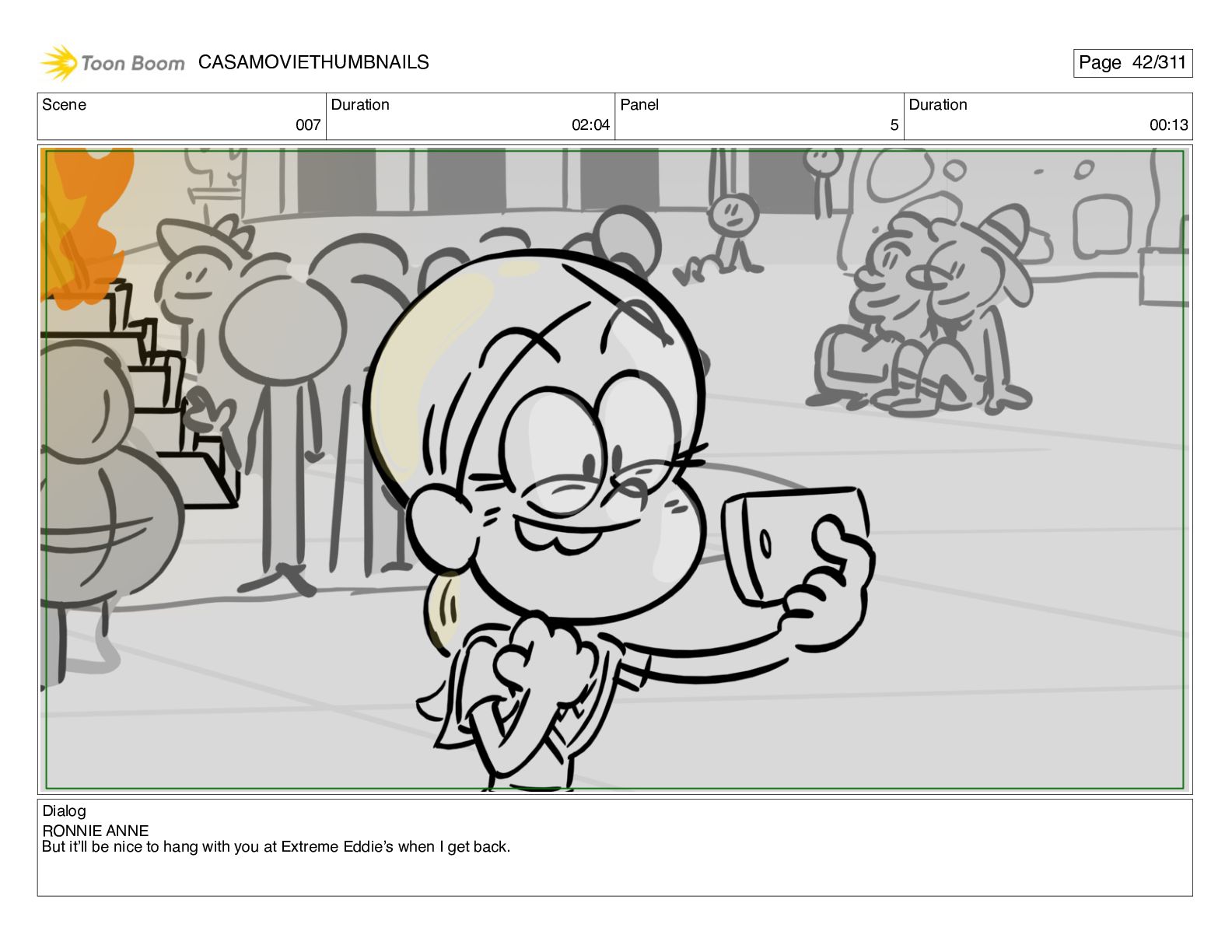 Scene 032 Duration 03:04 Panel 9 Duration 00:04 Dialog <RONNIE