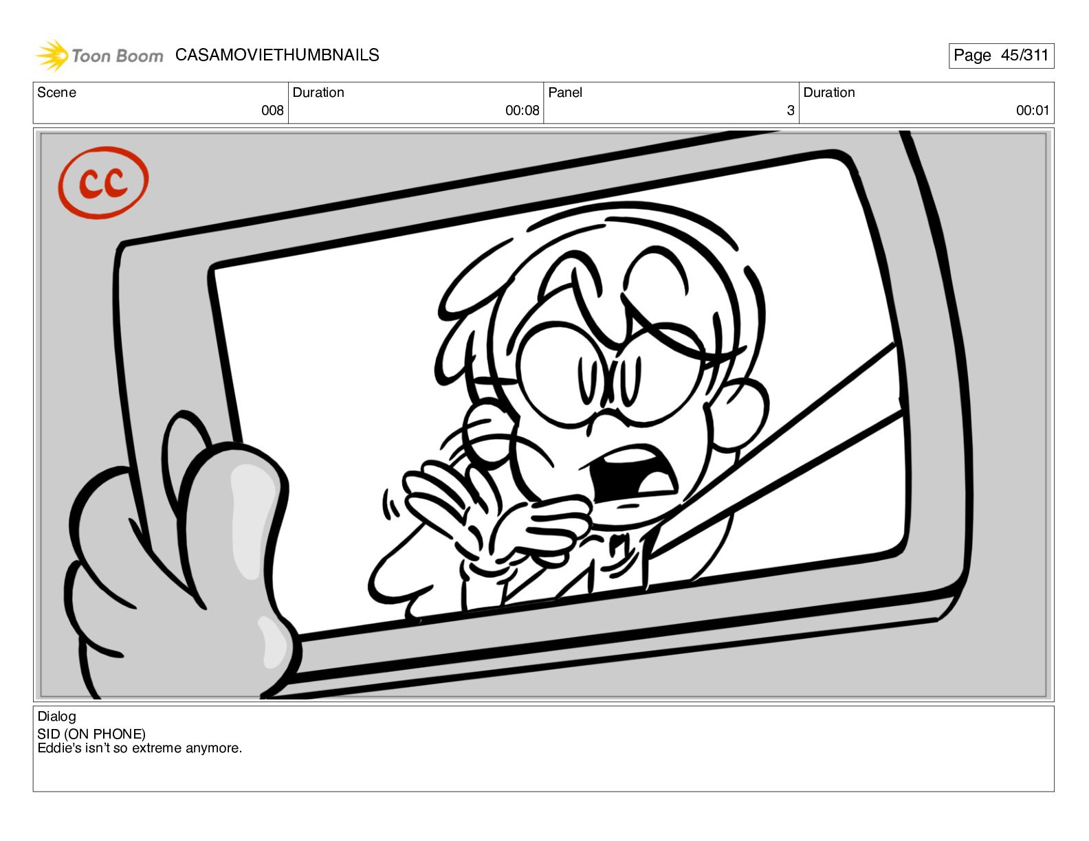 Scene 032 Duration 03:04 Panel 12 Duration 00:09 Dialog <RONNIE