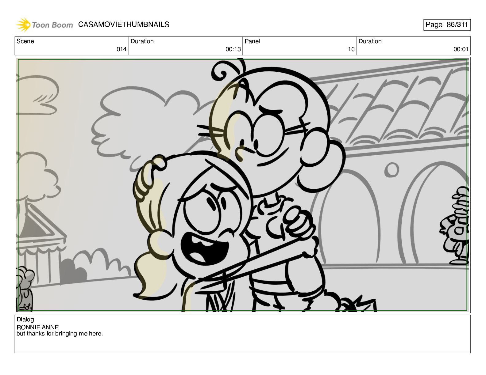 Scene 032 Duration 03:04 Panel 11 Duration 00:10 Dialog <RONNIE