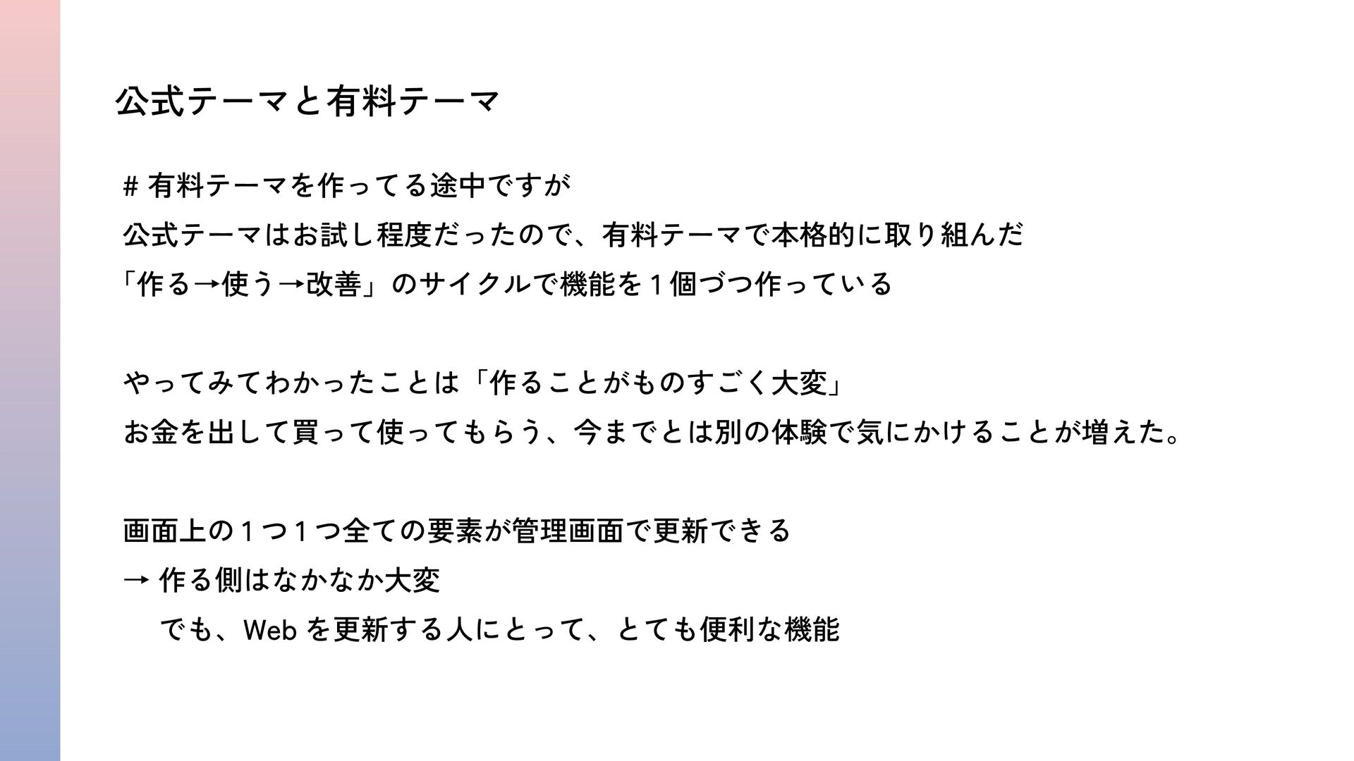 とってもレガシーなテーマ開発をしていた私が、初めての公式テーマと有料テーマ開発を通して学んだW...
