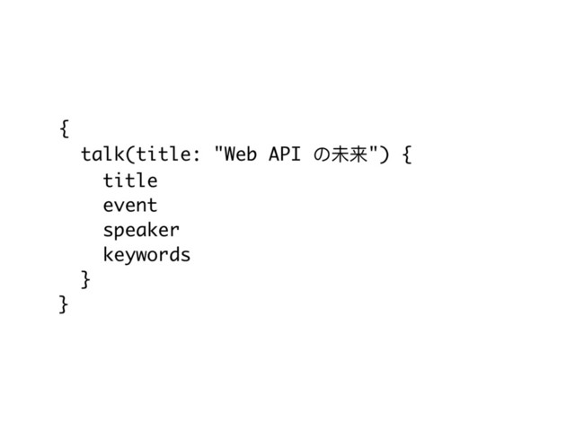 { talk(title: "Web API の未来") { title event speaker keywords