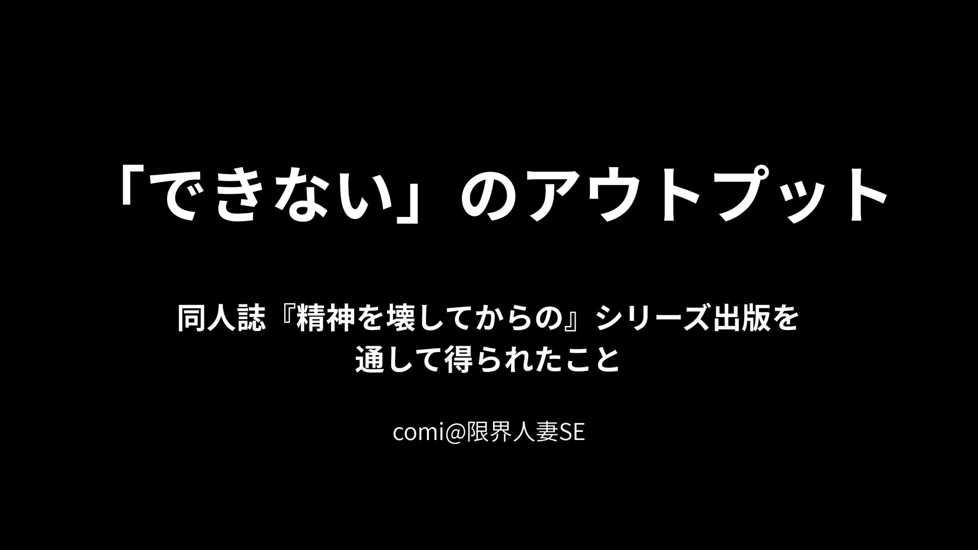「できない」のアウトプット 同人誌『精神を壊してからの』シリーズ出版を 通して得られたこと comi@限界人妻SE