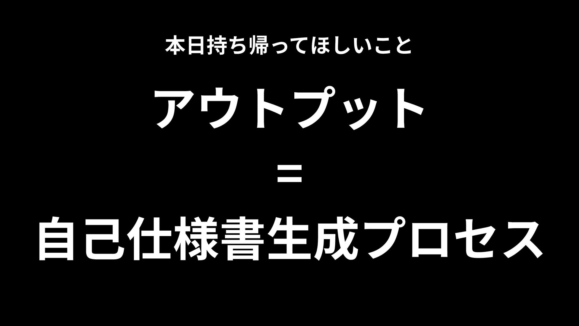 本日持ち帰ってほしいこと アウトプット = 自己仕様書生成プロセス