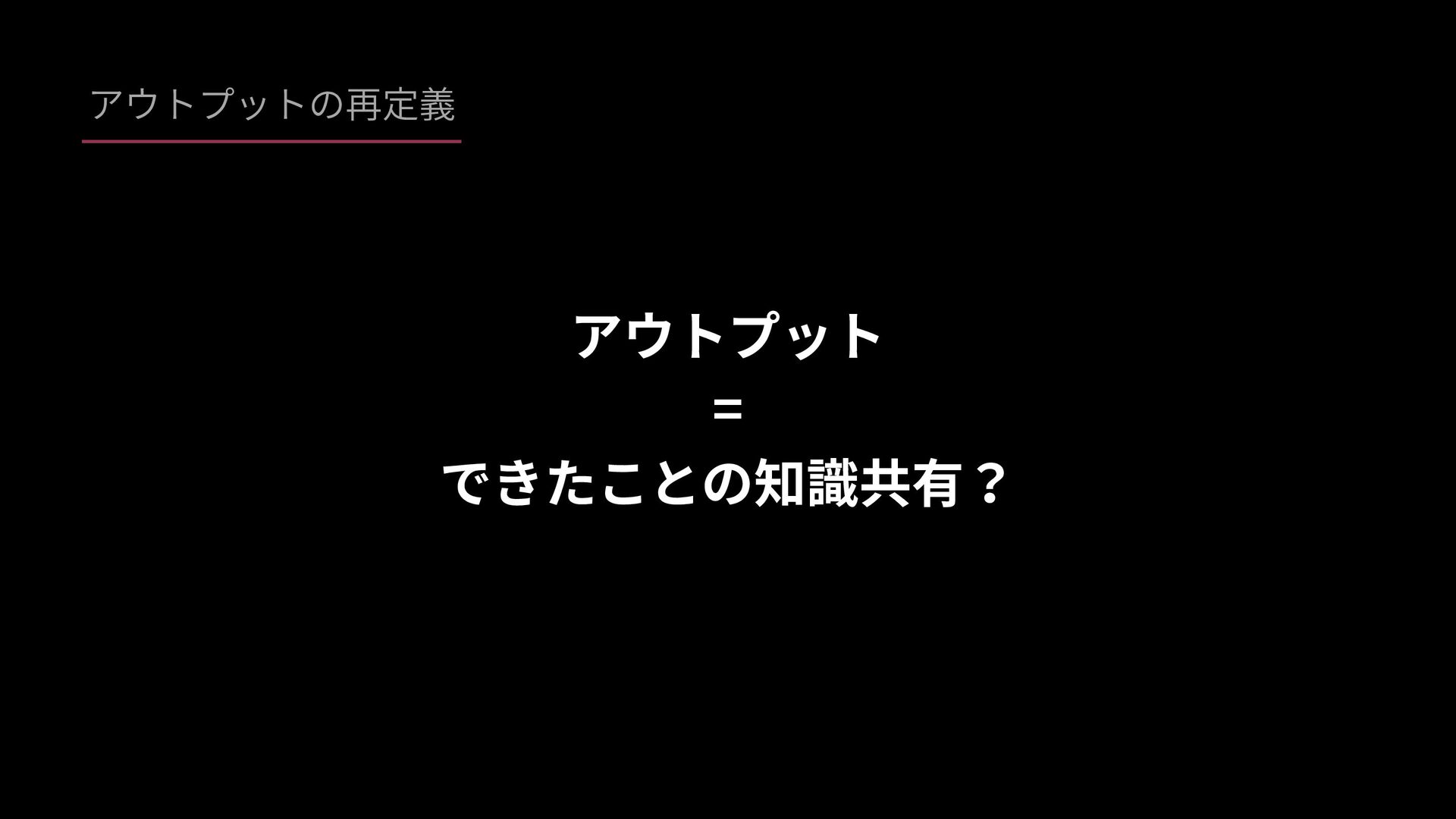 アウトプットの再定義 アウトプット = できたことの知識共有?
