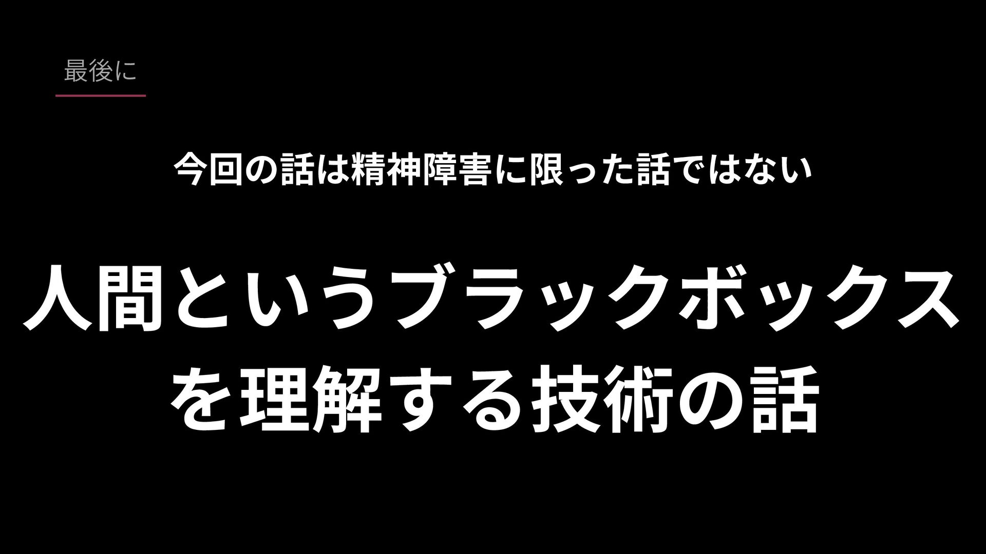 最後に 今回の話は精神障害に限った話ではない 人間というブラックボックス を理解する技術の話