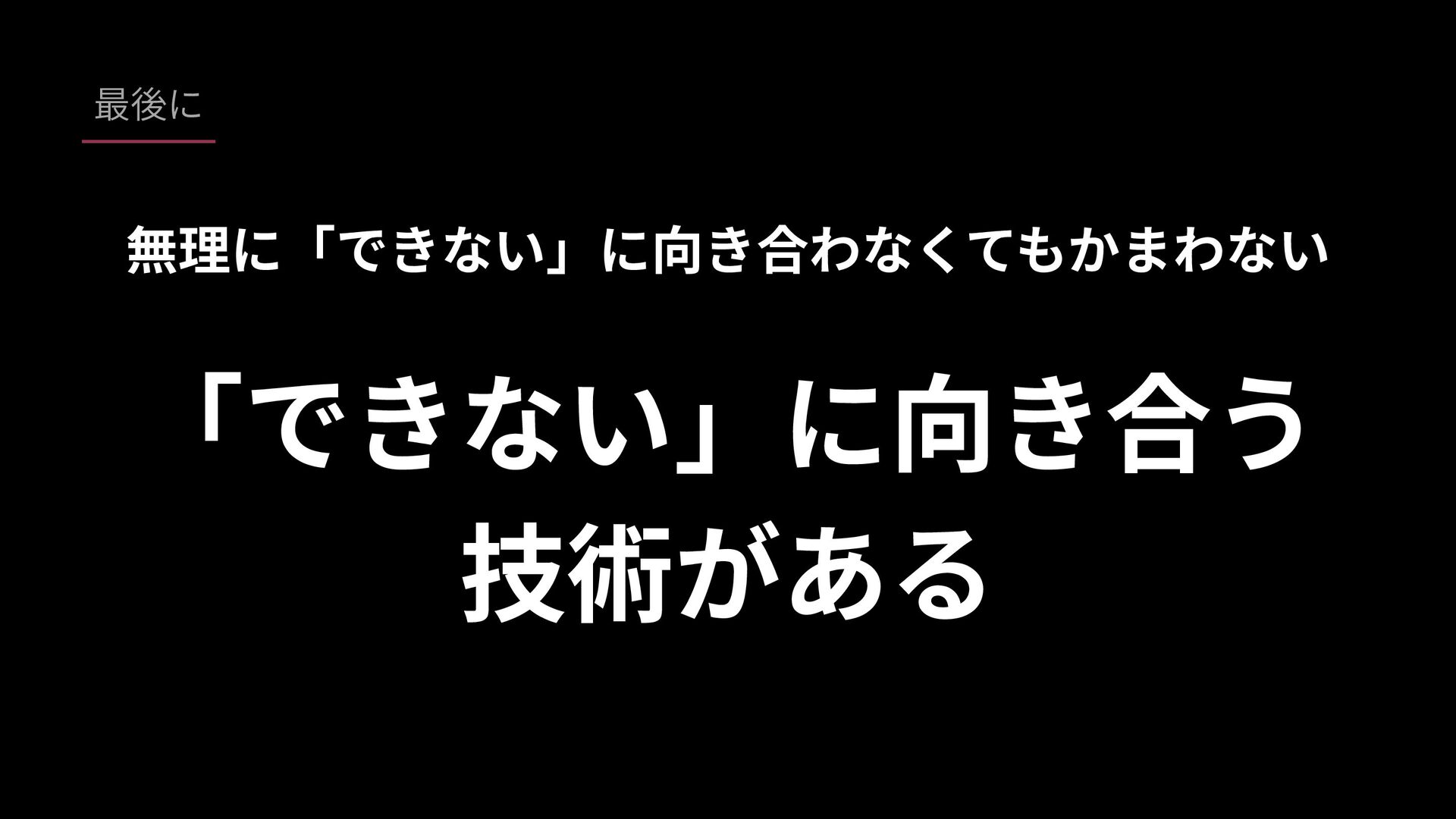 最後に 無理に「できない」に向き合わなくてもかまわない 「できない」に向き合う 技術がある