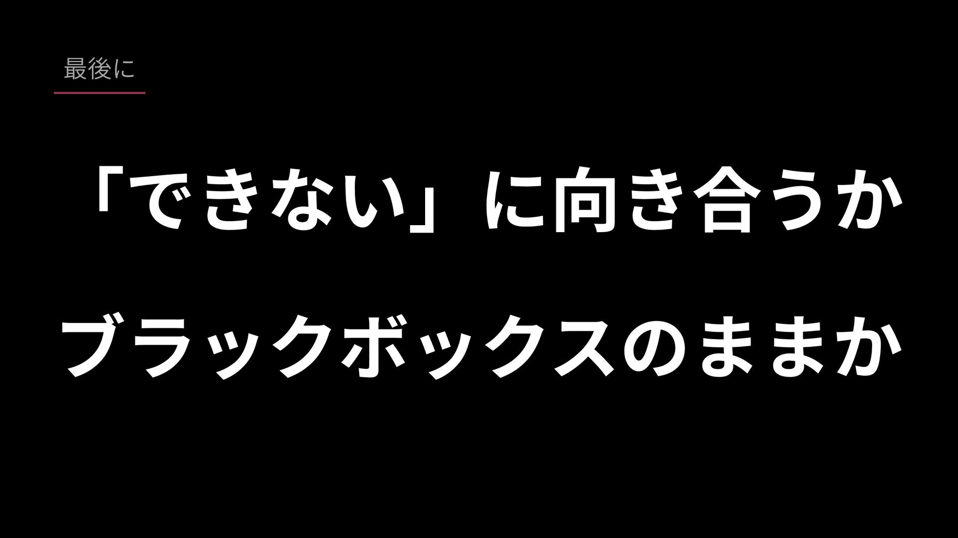 最後に 「できない」に向き合うか ブラックボックスのままか