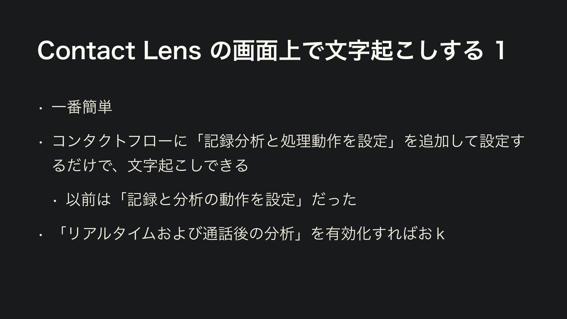 $POUBDU-FOTͷը໘্Ͱจࣈى͜͢͠Δ w Ұ൪؆୯ w ίϯλΫτϑϩʔʹʮهੳͱॲཧಈ࡞ΛઃఆʯΛՃͯ͠ઃఆ͢ Δ͚ͩͰɺจࣈى͜͠Ͱ͖Δ w Ҏલʮهͱੳͷಈ࡞Λઃఆʯͩͬͨ w ʮϦΞϧλΠϜ͓Αͼ௨ޙͷੳʯΛ༗ޮԽ͢Ε͓̺