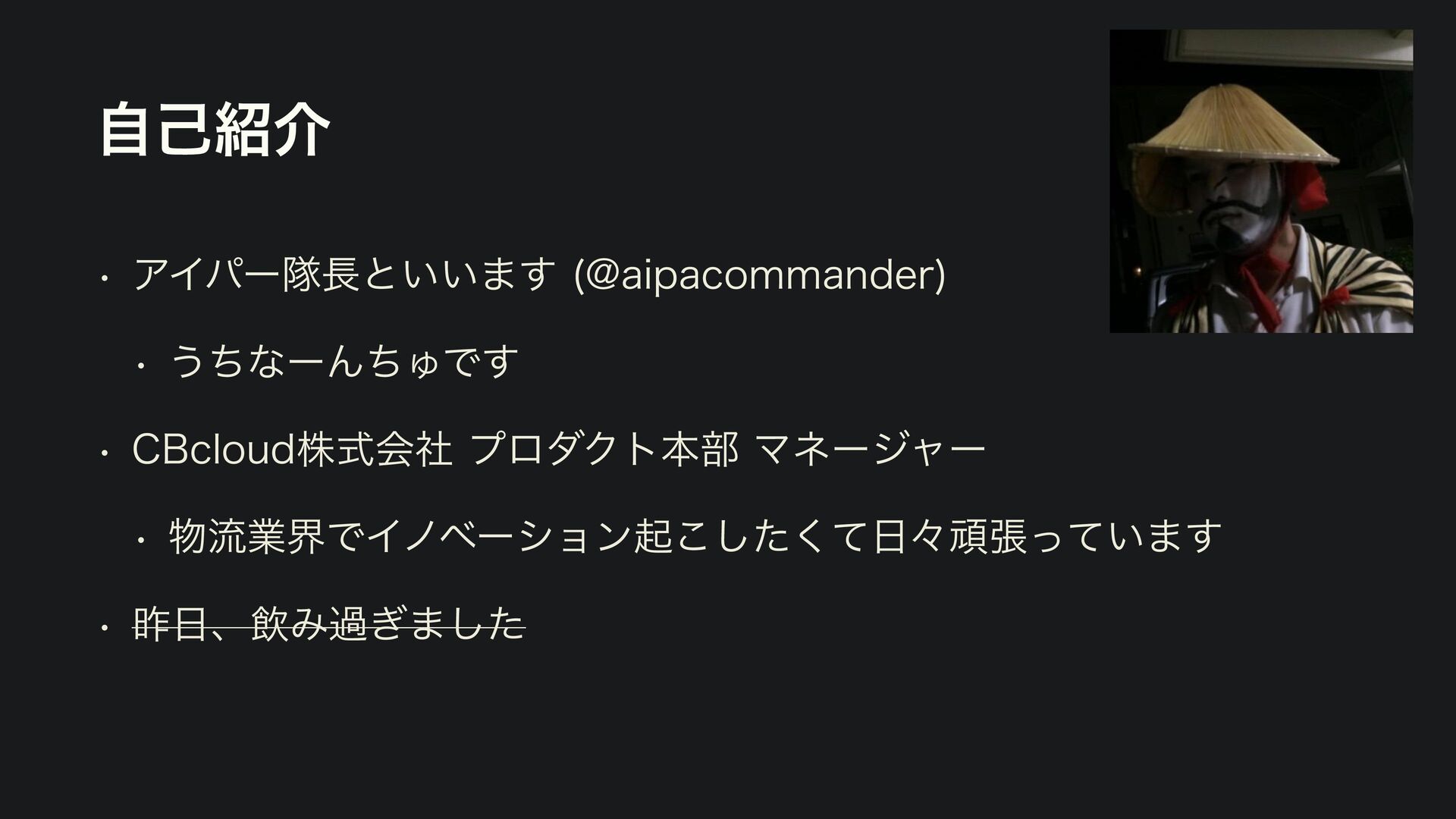 ࣗݾհ w ΞΠύʔୂͱ͍͍·͢ !BJQBDPNNBOEFS w ͏ͪͳʔΜͪΎͰ͢ w $#DMPVEגࣜձࣾϓϩμΫτຊ෦Ϛωʔδϟʔ w