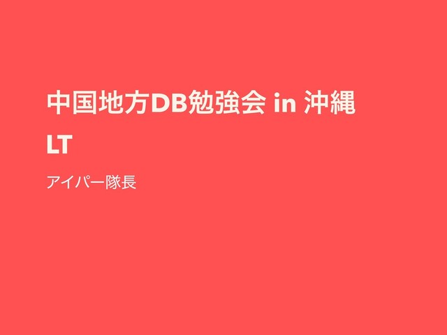 「【沖縄開催!】中国地方DB勉強会 in 沖縄」でLTしてきたスライド