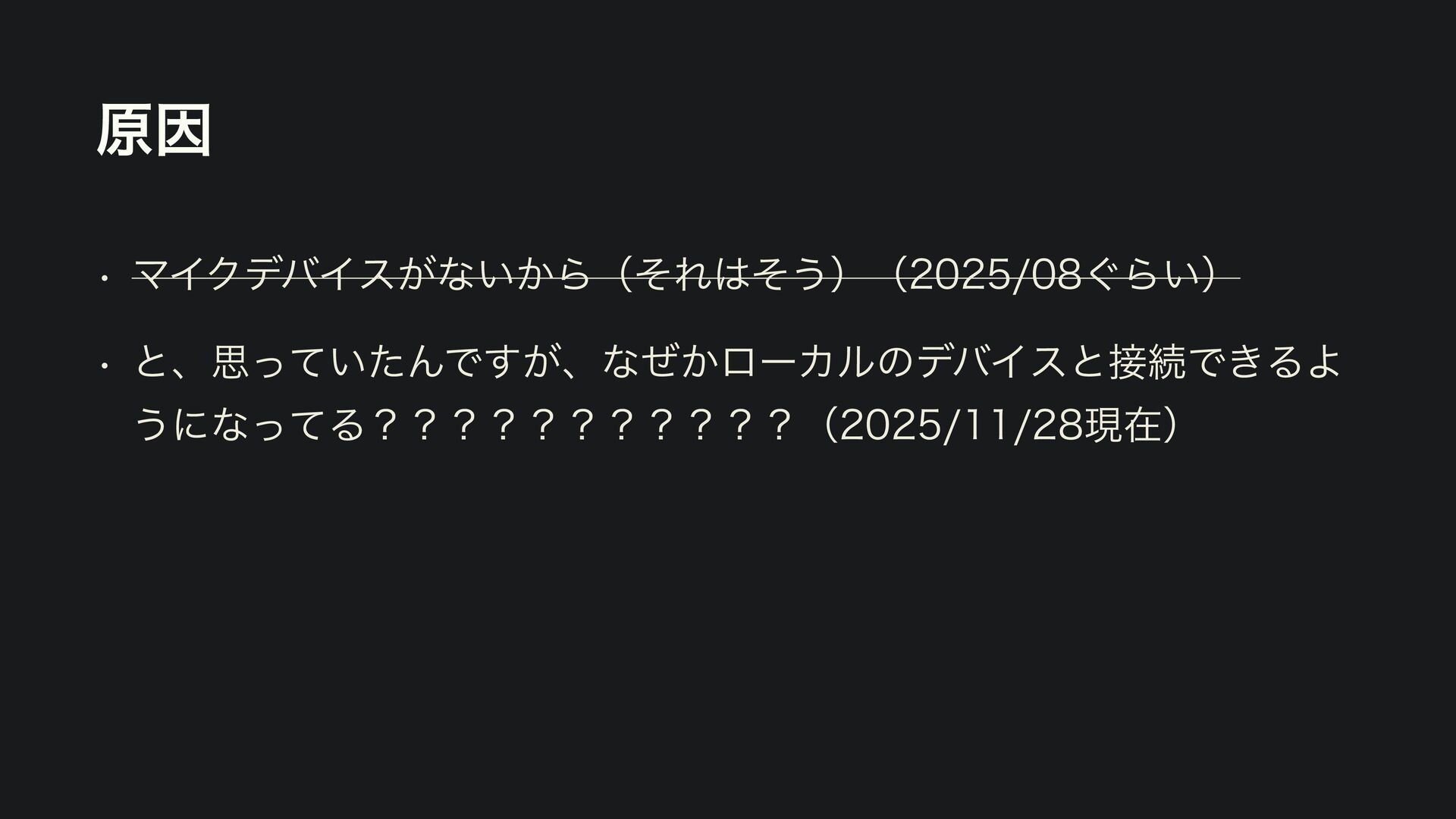 ݪҼ w ϚΠΫσόΠε͕ͳ͍͔ΒʢͦΕͦ͏ʣʢ͙Β͍ʣ w ͱɺࢥ͍ͬͯͨΜͰ͕͢ɺͳ͔ͥϩʔΧϧͷσόΠεͱଓͰ͖ΔΑ ͏ʹͳͬͯΔʁʁʁʁʁʁʁʁʁʁʁʢݱࡏʣ