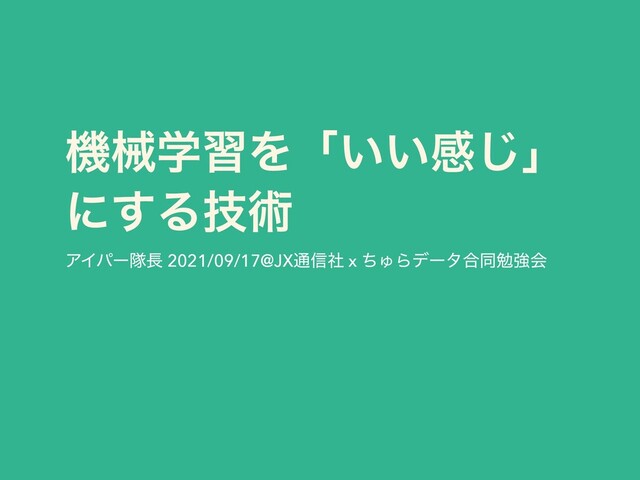 ػցֶशΛʮ͍͍ײ͡ʯ ʹ͢Δٕज़ ΞΠύʔୂ 2021/09/17@JX௨৴ࣾ x ͪΎΒσʔλ߹ಉษڧձ
