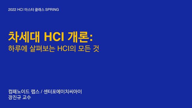 2022 HCI 마스터 클래스 SPRING 1주차 강의 HCI 개론에 대한 자료입니다.