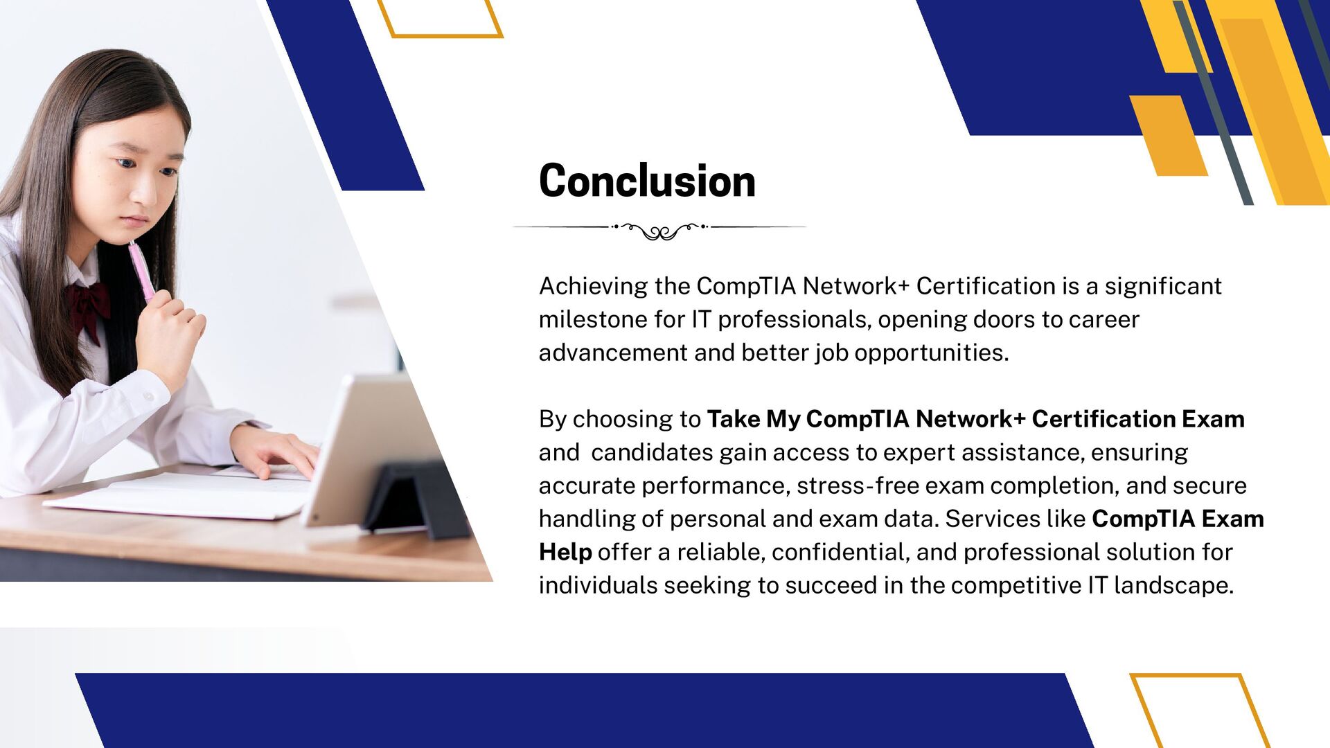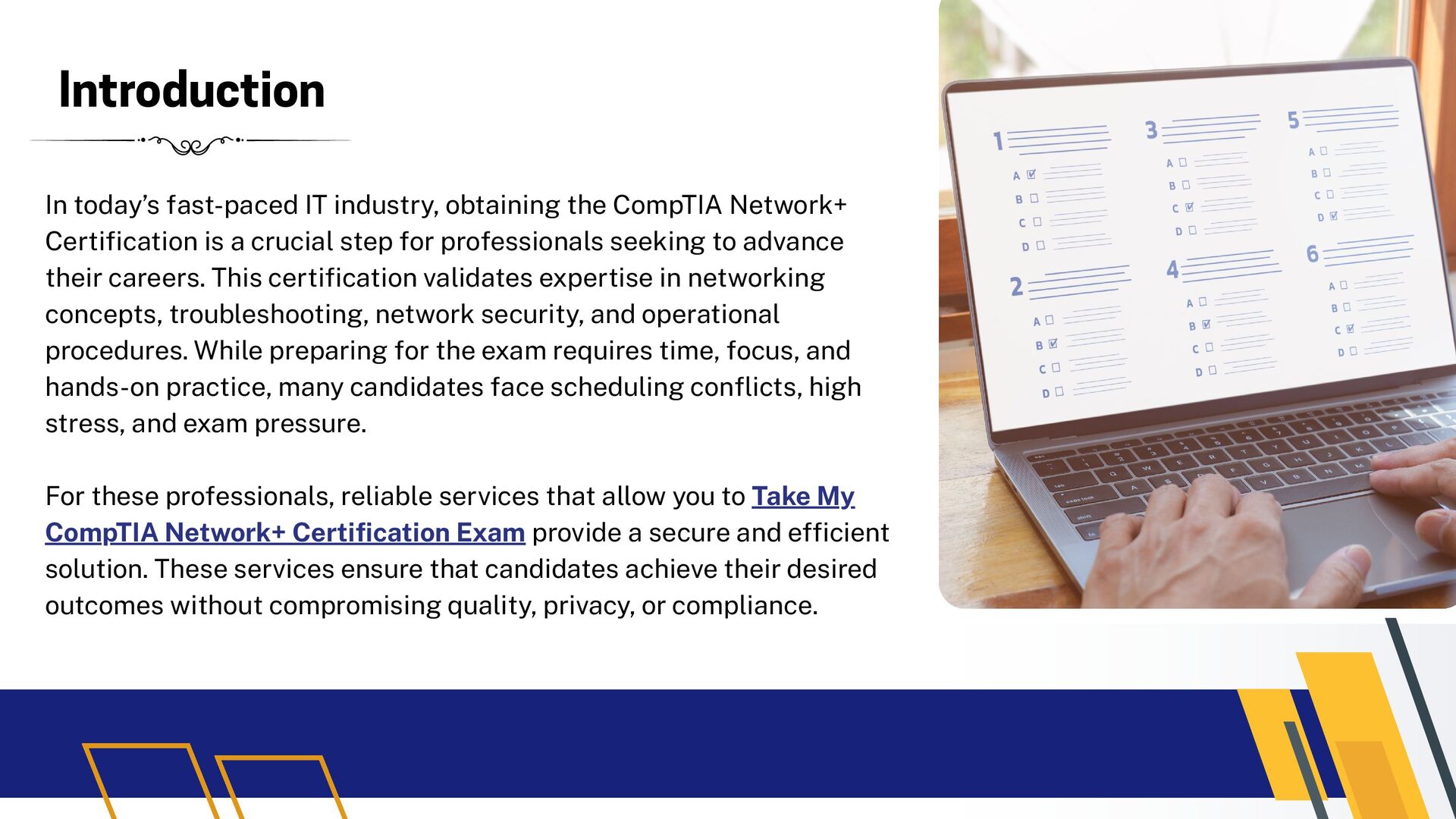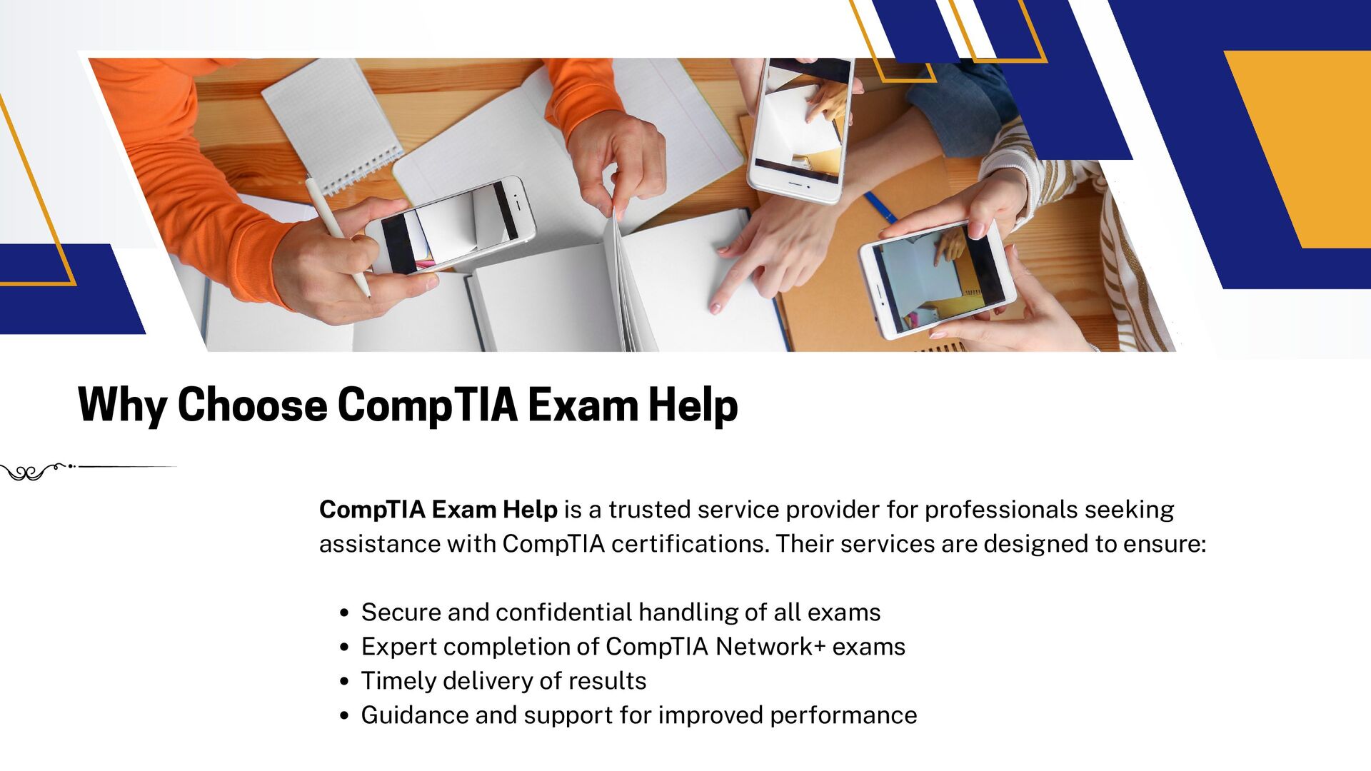 Get expert assistance with Take My CompTIA Network Certification Exam services to ensure success and save time. Professional help makes exam preparation stress-free, offering reliable support, accurate guidance, and improved performance for achieving your certification goals with confidence and efficiency. Get a Free Quote - https://comptiaexamhelp.com/take-my-online-comptia-network-exam