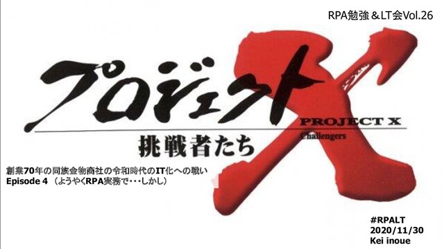 #RPALT 2020/11/30 Kei inoue 創業70年の同族金物商社の令和時代のIT化への戦い Episode 4 (ようやくRPA実務で・・・しかし) RPA勉強&LT会Vol.26