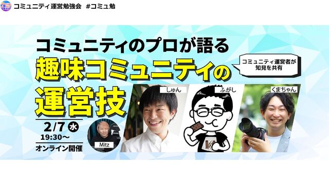 つながる ④オフライン・対面 会場などを借りて、対面で のスタイル ⑨情報交流系 コミュニティメンバー間で の情報共有 ⑦サポート系 コミュニティメンバーの 目標実現へのサポート ⑥オンラインイベント Zoomなどでのスタイル ⑧ネットワーキング系 コミュニティメンバー での交流 コミュニティ目的 コミュニケーションタイプ メンバー関係性 ⑤オンライン プラットフォーム Discordなどの オンラインでのスタイル 皆さんのコミュニティの目的・タイプ・関係性について 番号で教えてください 様々なコミュニティタイプ