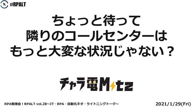 #RPALT ちょっと待って 隣りのコールセンターは もっと大変な状況じゃない? RPA勉強会!RPALT vol.28~IT・RPA・自動化ネタ・ライトニングトーク~ 2021/1/29(Fri)