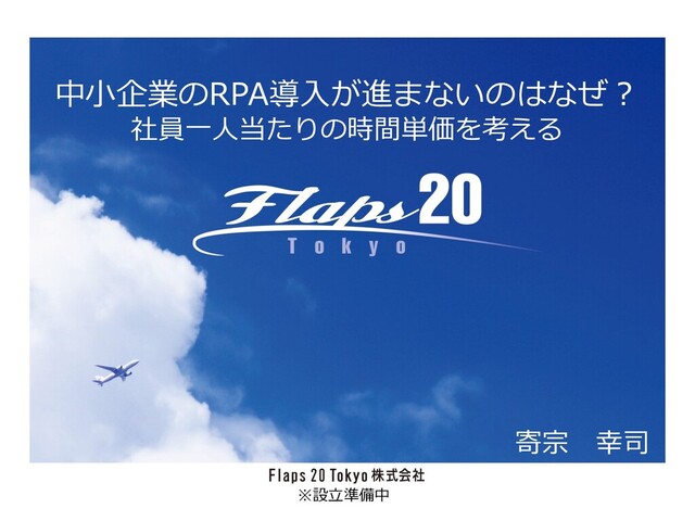 中⼩企業のRPA導⼊が進まないのはなぜ︖ 社員⼀⼈当たりの時間単価を考える 寄宗 幸司 ※設⽴準備中