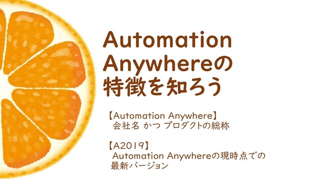 Automation Anywhereの 特徴を知ろう 【Automation Anywhere】 会社名 かつ プロダクトの総称 【A2019】 読み方:えーにーぜろいちきゅー