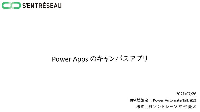 Power Apps のキャンバスアプリ 2021/07/26 RPA勉強会!Power Automate Talk #13 株式会社ソントレーゾ 中村