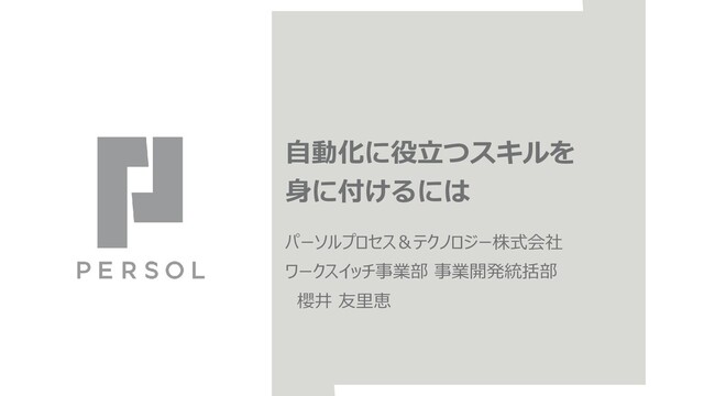 自動化に役立つスキルを 身に付けるには パーソルプロセス&テクノロジー株式会社 ワークスイッチ事業部 事業開発統括部 櫻井 友里恵