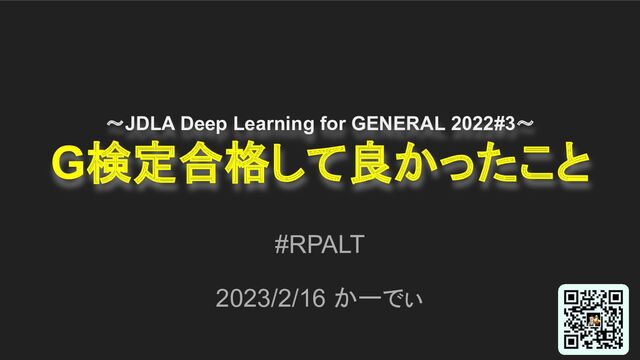 ~JDLA Deep Learning for GENERAL 2022#3~ G検定合格して良かったこと #RPALT 2023/2/16 かーでぃ