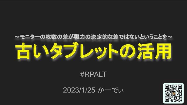 ~モニターの枚数の差が戦力の決定的な差ではないということを~ 古いタブレットの活用 #RPALT 2023/1/25 かーでぃ
