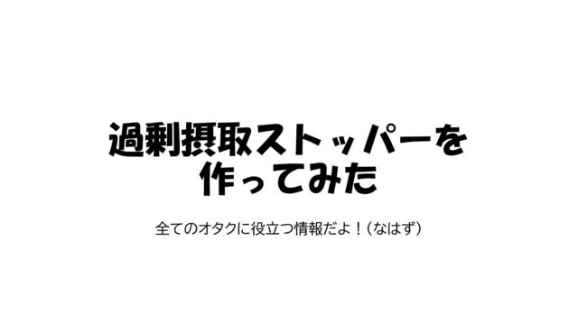 過剰摂取ストッパーを 作ってみた 全てのオタクに役立つ情報だよ!(なはず)
