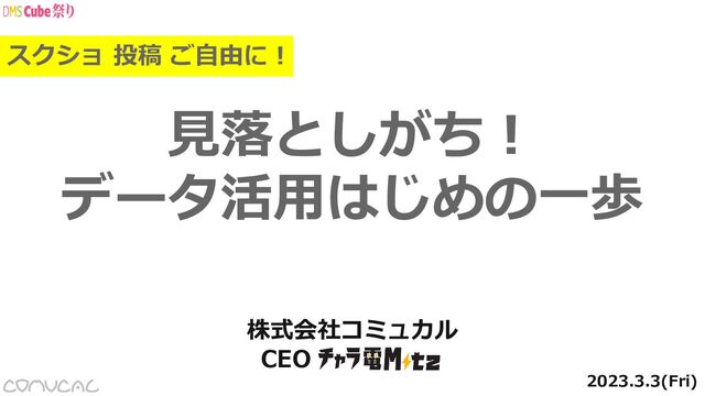 見落としがち! データ活用はじめの一歩 2023.3.3(Fri) 株式会社コミュカル CEO スクショ 投稿 ご自由に!