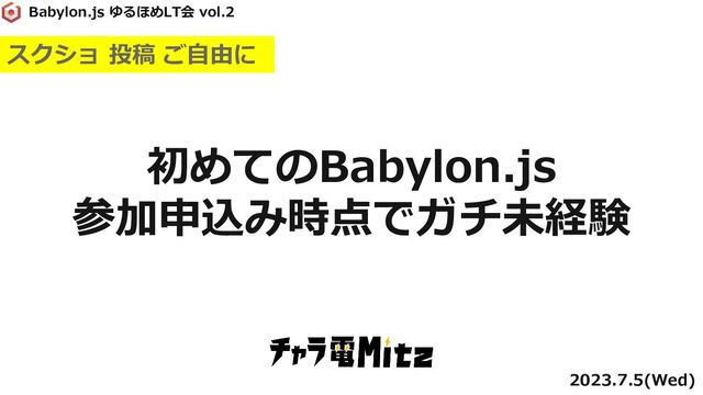 初めてのBabylon.js 参加申込み時点でガチ未経験 スクショ 投稿 ご自由に 2023.7.5(Wed) Babylon.js ゆるほめLT会 vol.2