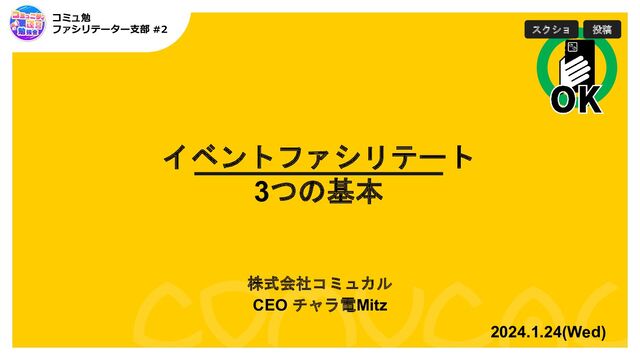 Java ・ JavaScript ・ Python など • IoTやブロックチェーン関連の開発経験 • 年間200以上コミュニティイベントに参加 • 登壇経験 約150回 ファシリテート 約500回 • コミュニティイベント運営 約600回 • エンジニア経験&コミュニティ活動きっかけで起業 数百名から数千名のコミュニティがメイン 多いものでは1万人以上のコミュニティを推進・サポート中 2B、2C、趣味コミュ、社内コミュなど多数運営中 コミュニティ運営勉強会 主催 CMX Connect TOKYO 運営メンバー CLS高知 運営メンバー コミュニティのプロやってます!