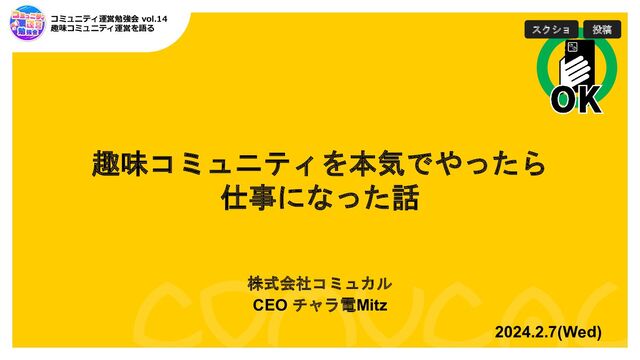 ・RPA関連のオフラインイベントに参加して、参加者と会話し 仲間を募る ・同じ関心事をもつメンバー同士での対面会話が熱量を高 めるのに最適 2018.3 RPACommunity 立ち上げ ・毎月異なる会場でオフラインイベント ・注目ワードのため毎回100名以上が参加 ・初回からSNS発信とTogetterの流れを意識したイベント構 築(数千~万超のviewを実現) ・バズワードや注目ワードを効果的に採用することで人数を 集める ・特定企業や製品にこだわらない公平性を重視 ・コンテンツや登壇者や進行にこだわり営業感は徹底的に 無くし参加者満足度を高める ・参加者のSNS拡散への促しも行う仕組みを取り入れること で業界注目度も高める ・満足度と注目度の高さのおかげで無償会場提供も容易 2018.8 他コミュニティとコラボイベント ・会場を持つ企業のコミュニティ ・特定製品ではなくジャンル盛り上げの観点で合意 ・コラボイベントはお互いにとって良い刺激だが、双方(どち らか)の営利に繋がらないのが重要 2018.12 初の支部誕生(大阪支部) ・支部立ち上げまでは実質1か月掛かっていない ・支部初イベントの参加者は100名超え ・東京開催したオフラインイベントに大阪から来てくれた参 加者が大阪主催者として立候補、対面は強い ・イベントページ作成や告知拡散や各種調整ゴトは全て Mitz&Ayyで担うことで支部主催者の負担を減少 2019.1 RPACommunity メディアスポンサー誕生 ・Mitz|RPAメディア運営企業からスカウトを受け転職 ・RPAメディア企業がメディアスポンサーに ・対象ジャンルのメディア企業がスポンサーになることで公 平性の維持と同時に良質な情報取得と発信も実現 2020.3 オンライン化(コロナ禍) ・移行期間1か月未満(数週間) ・初オンラインイベント参加者は約100名 ・Zoom開催としたが、運営側でZoom操作をとにかく徹底習 得し参加者へ情報共有 2020.3 YouTubeチャンネル作成 ・オンライン化と同月にYouTubeライブも併用化 ・ZoomとYouTubeの需要比較を実施 2020.7 YouTube動画品質向上化 ・Zoomライブ⇒動画編集⇒YouTubeアーカイブ形式に ・良質なアーカイブに対する需要があると判断しイベント動 画の事後編集対応を開始(専任者を立てる)