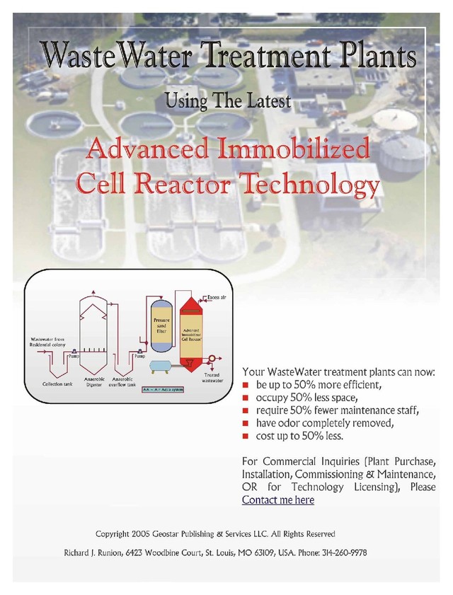 commissioned by Geostar Publishing LLC, is part of a larger eBook titled, "All About Wastewater Treatment", which is a compilation of material written by several authors who are specialists in their respective realms of Wastewater Treatment. If you need professional advice/ consultancy from the authors or the organizations they represent, we will put you in touch with the respective authors. This service is offered on a 'FREE of cost', ‘non-obligatory' basis. Email us at , with details of your specific requirement. Or visit: and post your requirement, with details, as a Ticket. We'll forward your requirements to the respective author, and get his/ her to reply within a week, normally much sooner. [email protected] http://www.All-About-WasteWater-Treatment.com/helpdesk Professional Help/ Advice on WasteWater Treatment, and related topics