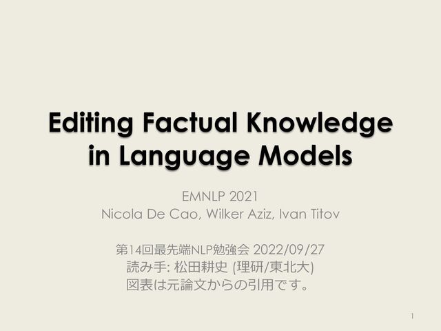 Cao, Wilker Aziz, Ivan Titov 第14回最先端NLP勉強会 2022/09/27 読み⼿: 松⽥耕史 (理研/東北⼤) 図表は元論⽂からの引⽤です。 1